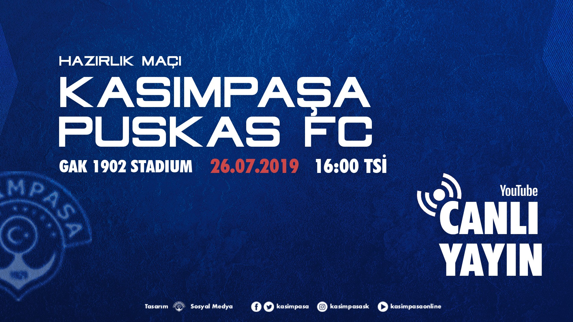 2019-2020 Sezonu öncesi Avusturya kampında Kasımpaşamız ile Puskas FC, GAK 1902 Stadı’nda TSİ 16:00'da karşı karşıya geliyor.
