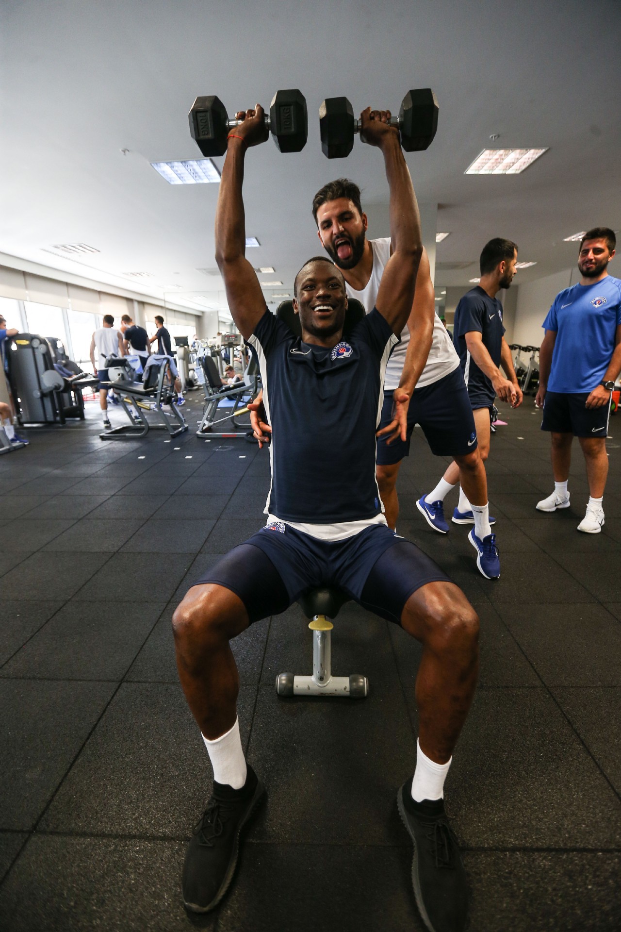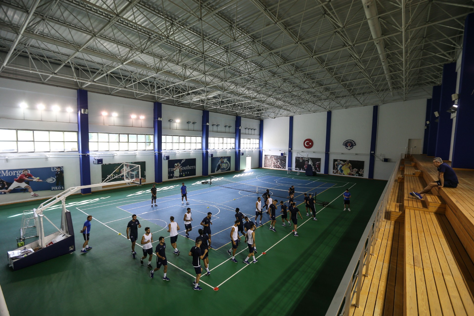 Antrenman takım halinde salonda yapılan ısınma hareketleri ve streching çalışması ile başladı. Kuvvet istasyonlarından oluşan parkurda oyuncular çalışmalarını tamamladılar.