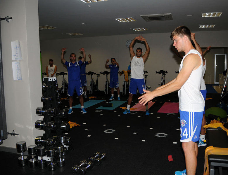 Akşam antrenmanına ise oyuncularımız koşu ve ısınma hareketleriyle başladılar, sürat ve çabukluk çalışmalarıyla devam ettiler. Antrenman pas çalışmalarının ardından yapılan pozisyon çalışmalarıyla sona erdi.