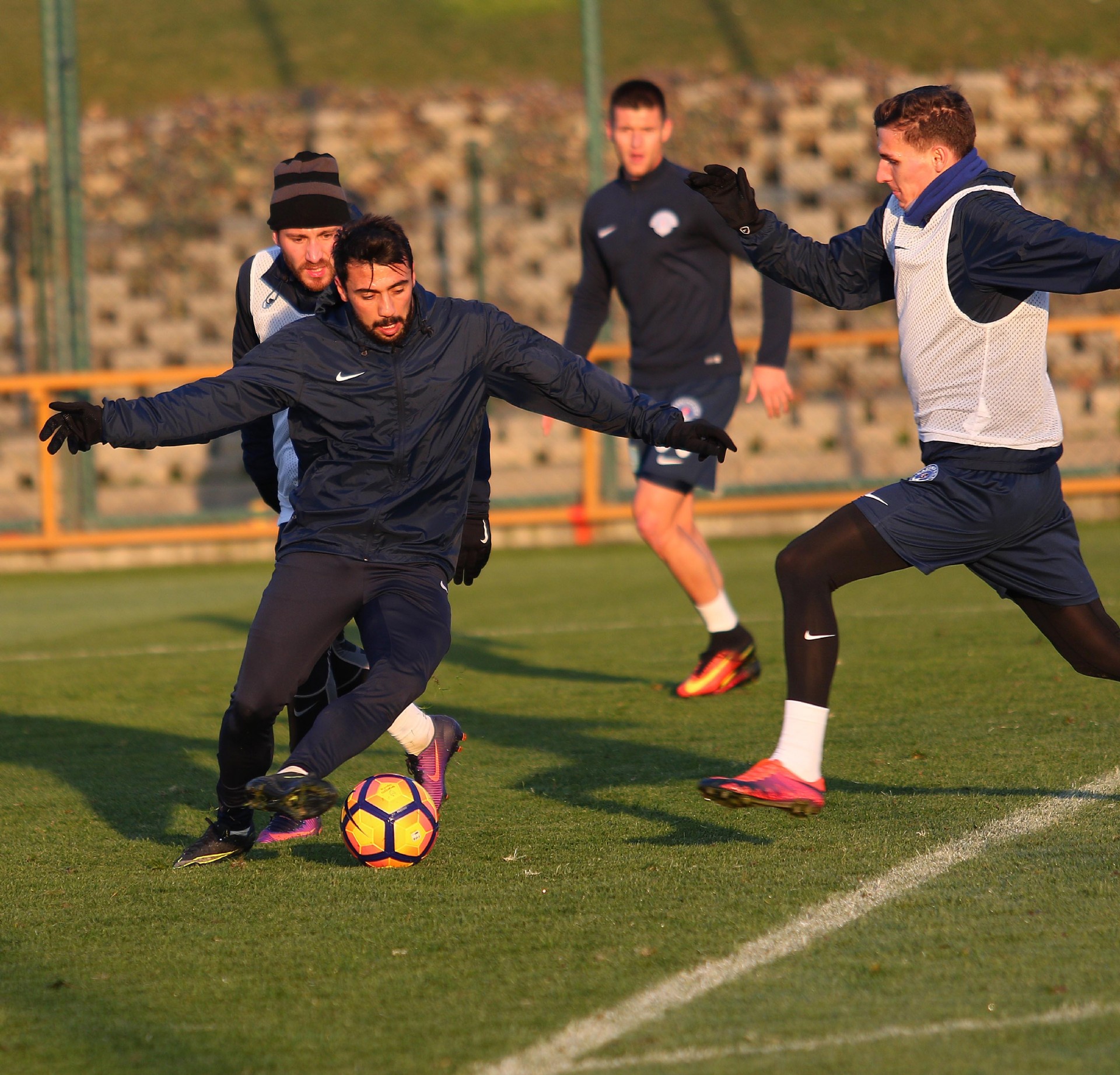 Oyuncularımız, antrenmana koşu ve ısınma hareketleriyle başladılar, pas çalışmalarıyla devam ettiler. Antrenman 5'e 2 top kapma çalışmalarının ardından yapılan çift kale maç turnuvasıyla sona erdi.
