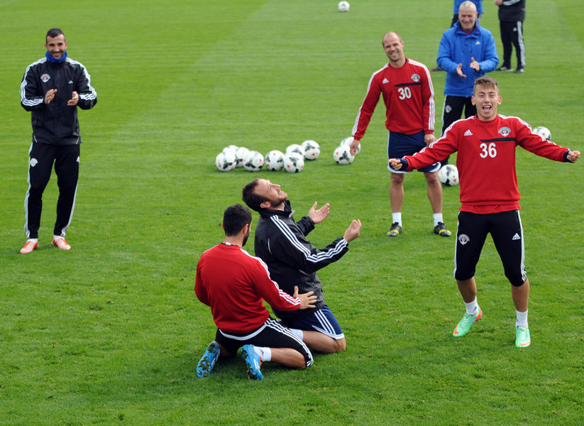 Oyuncularımız, antrenmana koşu ve ısınma hareketleriyle başladılar, 5’e 2 top kapma çalışmalarıyla devam ettiler. Antrenman çift kale maçın ardından yapılan taktik çalışmalarıyla sona erdi.