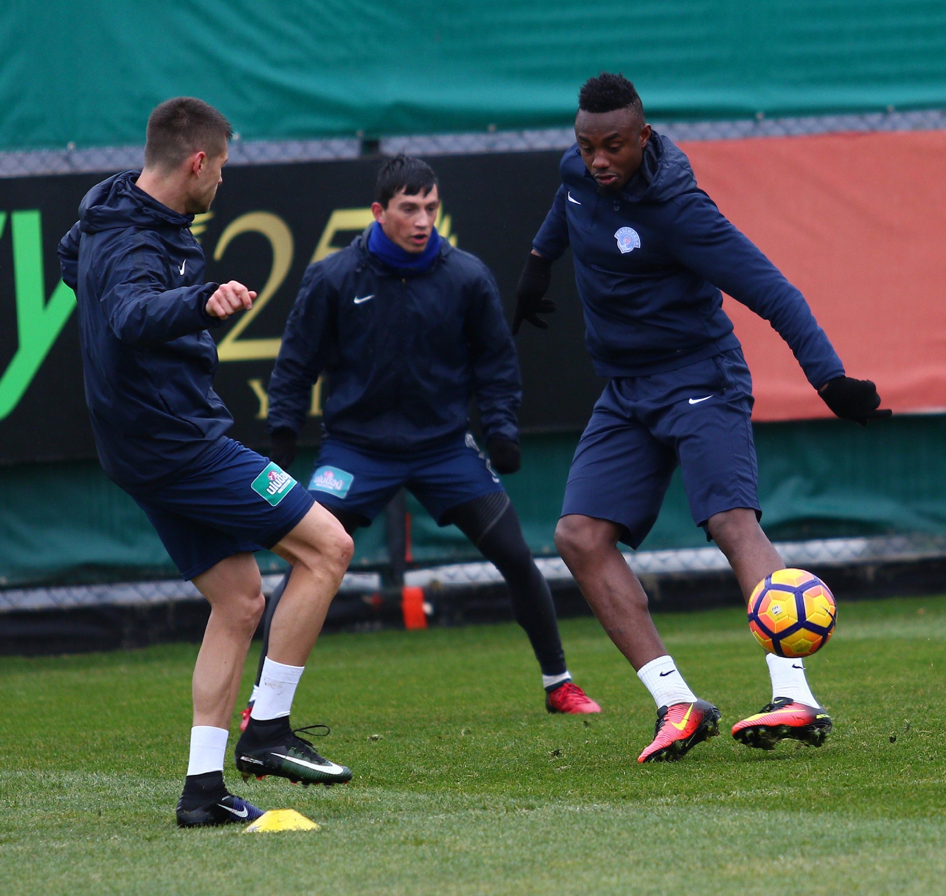 Oyuncularımız, antrenmana koşu ve ısınma hareketleriyle başladılar, pas çalışmalarıyla devam ettiler. Antrenman 5'e 2 top kapma çalışmalarının ardından yapılan pas-şut çalışmalarıyla sona erdi.