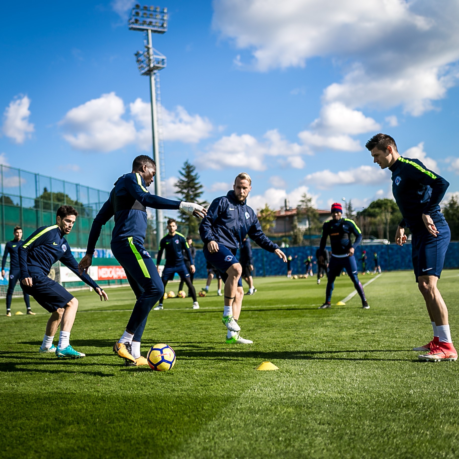 Oyuncularımız antrenmana koşu ve ısınma hareketleriyle başladılar, pas çalışmalarıyla devam ettiler. Antrenman 5'e 2 top kapma çalışmalarının ardından yapılan taktik çalışmalarıyla sona erdi.