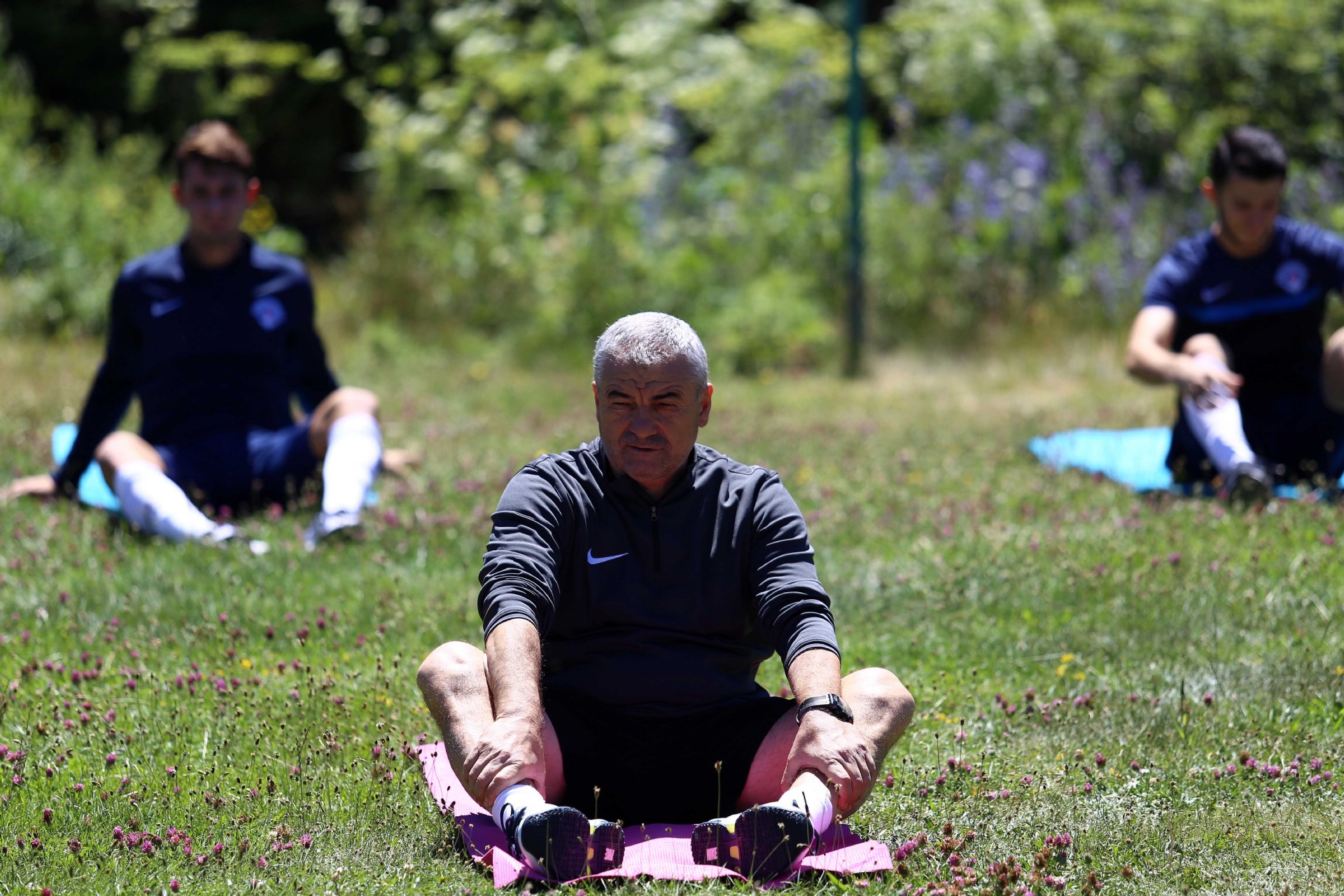 Antrenmana oyuncularımız koşu ve ısınma hareketleriye başladı, stretching çalışmasıyla antrenman tamamlandı.