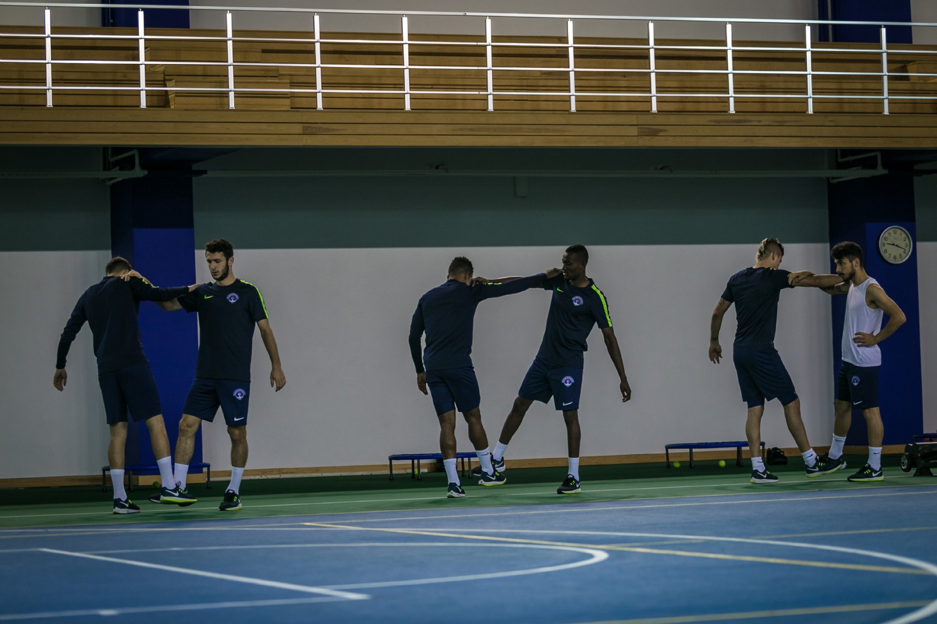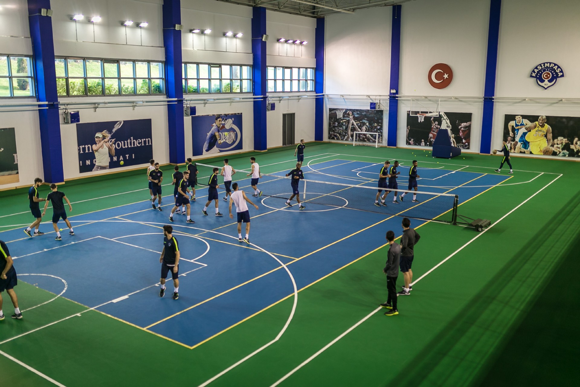 Antrenman takım halinde salonda yapılan ısınma hareketleri ve streching çalışması ile başladı. 8 istasyondan oluşan parkurda oyuncular üç tur üzerinden değişmeli olarak denge ve kuvvet çalışmalarını tamamladılar.