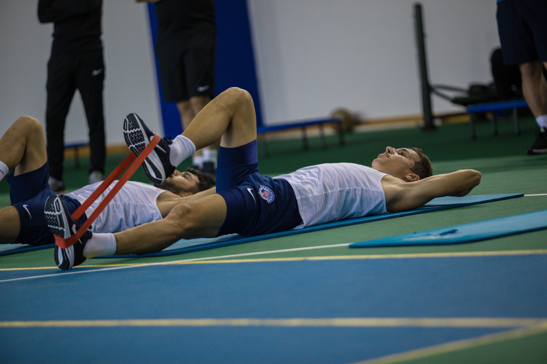 Antrenman takım halinde salonda yapılan ısınma hareketleri ve streching çalışması ile başladı daha sonda su topu çalışması ile tamamlandı.