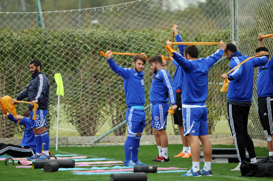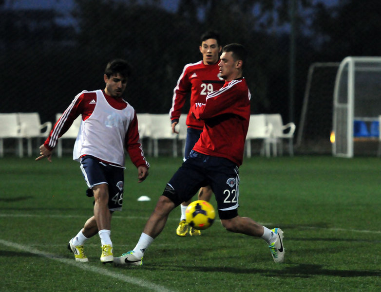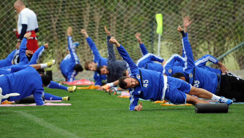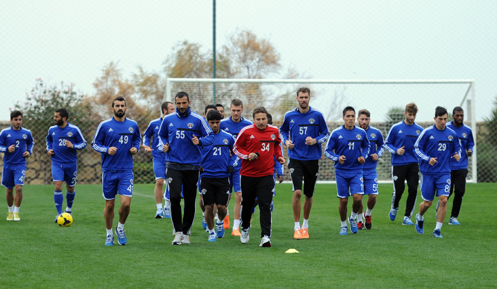 Akşam antrenmanına oyuncularımız koşu ve ısınma hareketleriyle başladılar. Antrenman, pas çalışmalarının ardından yapılan çift kale maçla sona erdi.