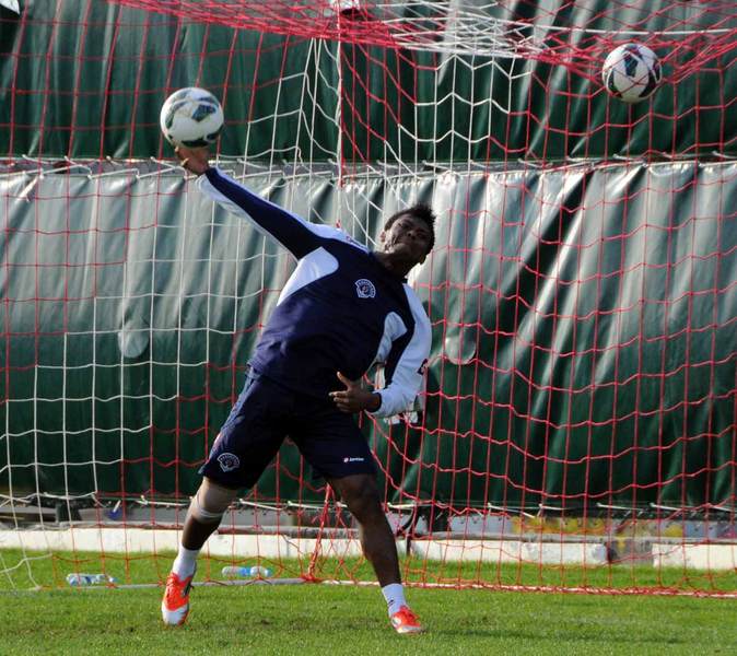 Antrenmanın ardından oyuncumuz Kalu Uche kaleye geçip, takım arkadaşlarından gelen şutları çıkarmaya çalışarak, neşeli görüntüler oluşturdu.