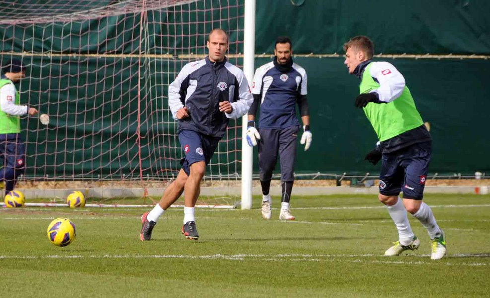 Oyuncularımızın koşu ve ısınma hareketleriyle başladıkları antrenmanda, 5’e 2 top kapma çalışması yapıldı. Daha sonra taktik çalışmasının yapıldığı antrenman, kanat organizasyonu çalışmasının ardından yapılan duran top çalışmasıyla sona erdi.