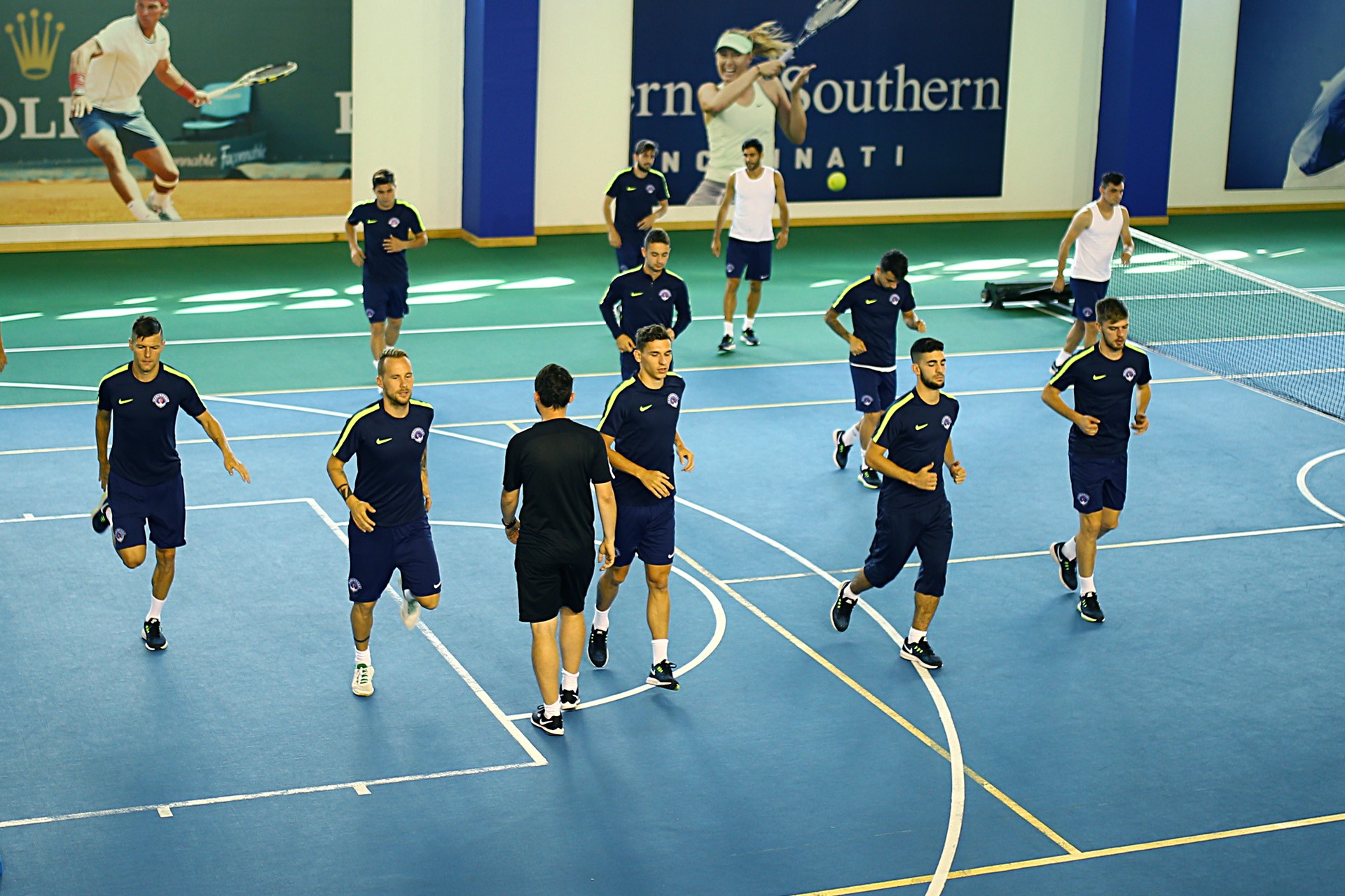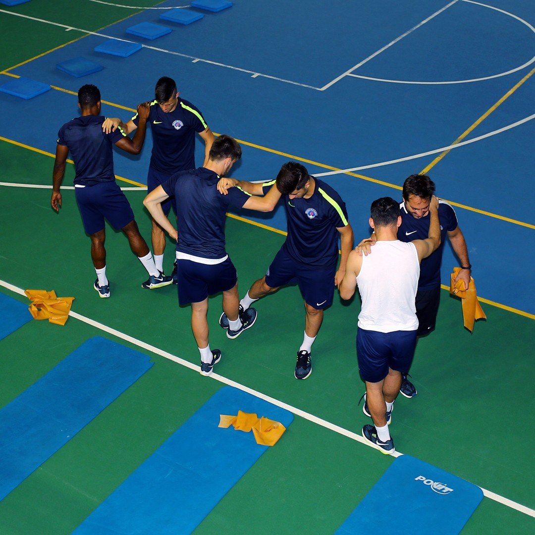 Antrenman takım halinde salonda yapılan ısınma hareketleri ve streching çalışması ile başladı. 8 istasyondan oluşan parkurda oyuncular üç tur üzerinden değişmeli olarak denge ve kuvvet çalışmalarını tamamladılar.