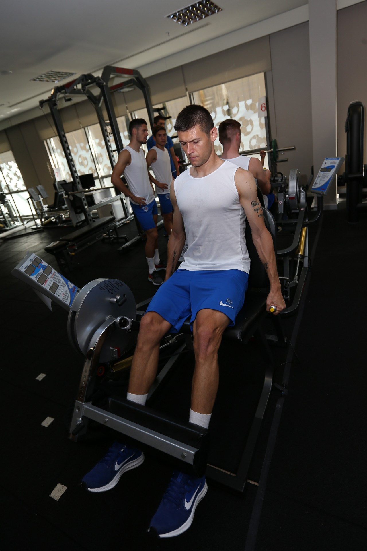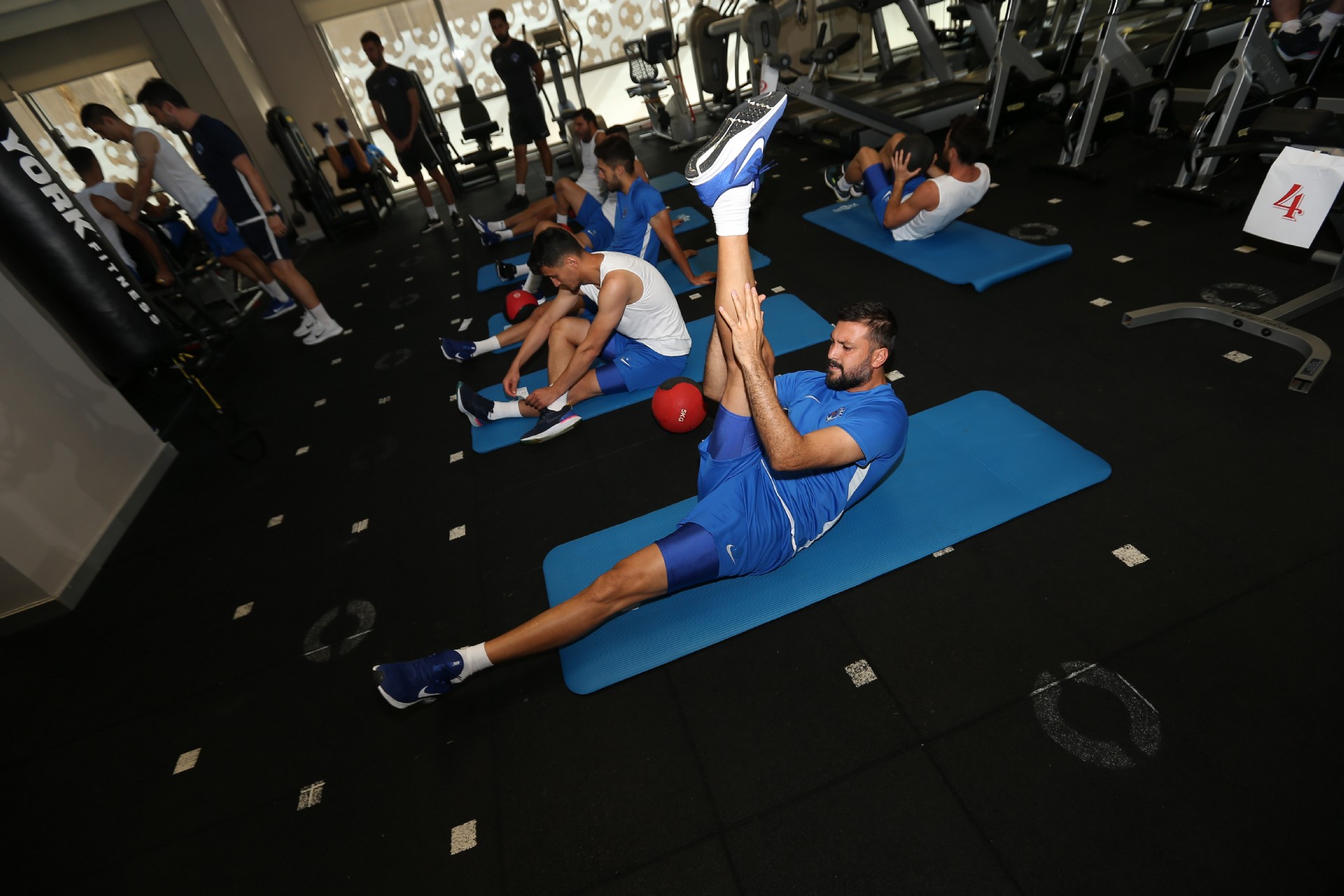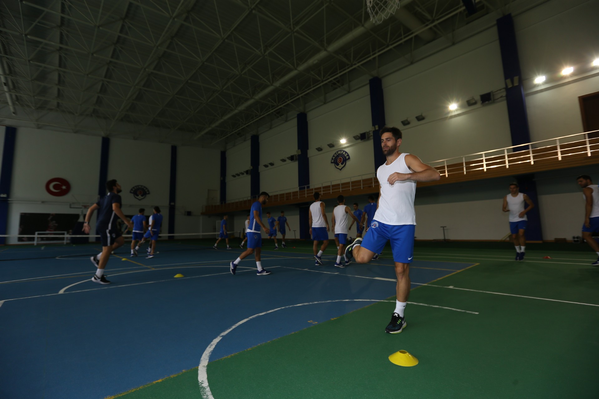 Antrenman takım halinde salonda yapılan ısınma hareketleri ve streching çalışması ile başladı. Kuvvet ve çabukluk istasyonlarından oluşan parkurda oyuncular çalışmalarını tamamladılar.
