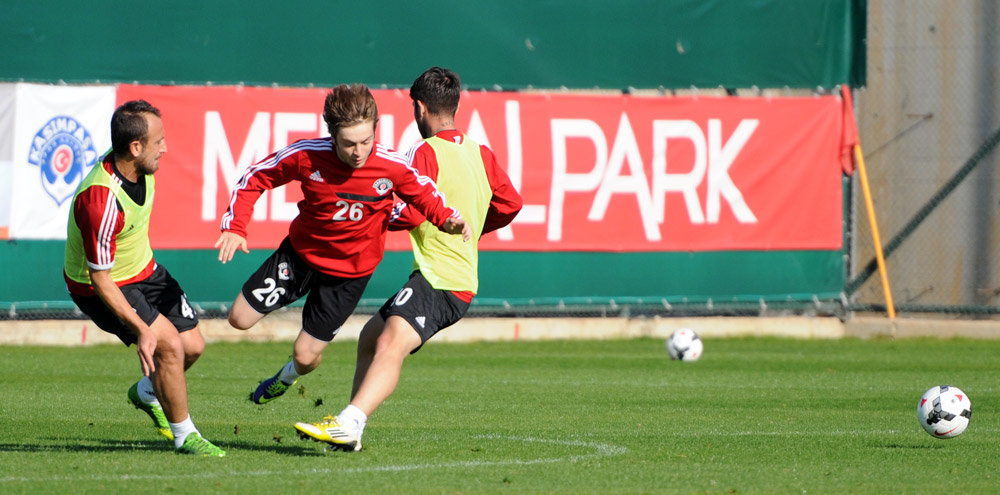 Antrenmana oyuncularımız koşu ve ısınma hareketleriyle başladı ve pas çalışmalarıyla devam etti. Antrenman pozisyon çalışmalarının ardından yapılan çift kale maçla sona erdi.