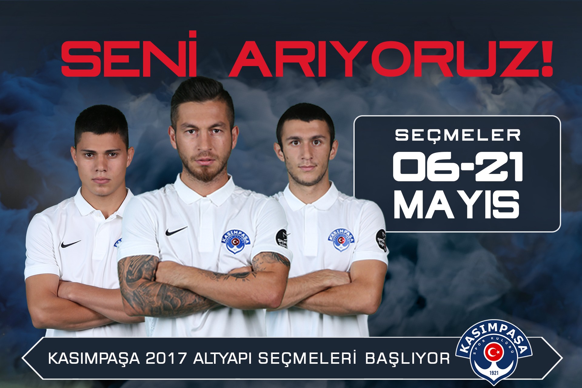 Ayrıca seçme günü tarihlerinde kayıt için Kemerburgaz Kasımpaşa Spor Tesisleri'nde sabah 09:00'da hazır bulunmanız gerekmektedir.