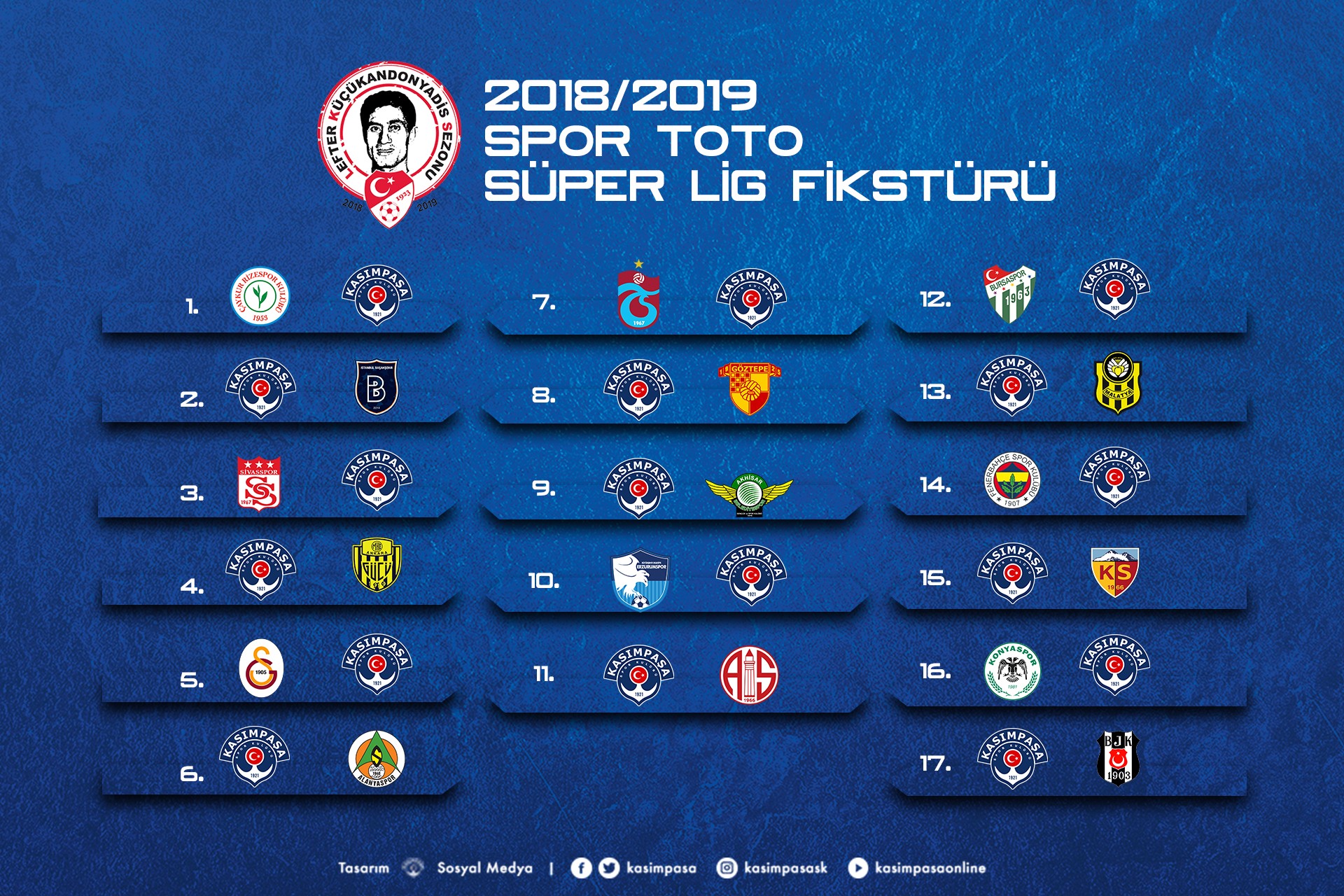 Takımımızın, 2018-2019 Spor Toto Süper Lig Lefter Küçükandonyadis Sezonu fikstürü belli oldu.