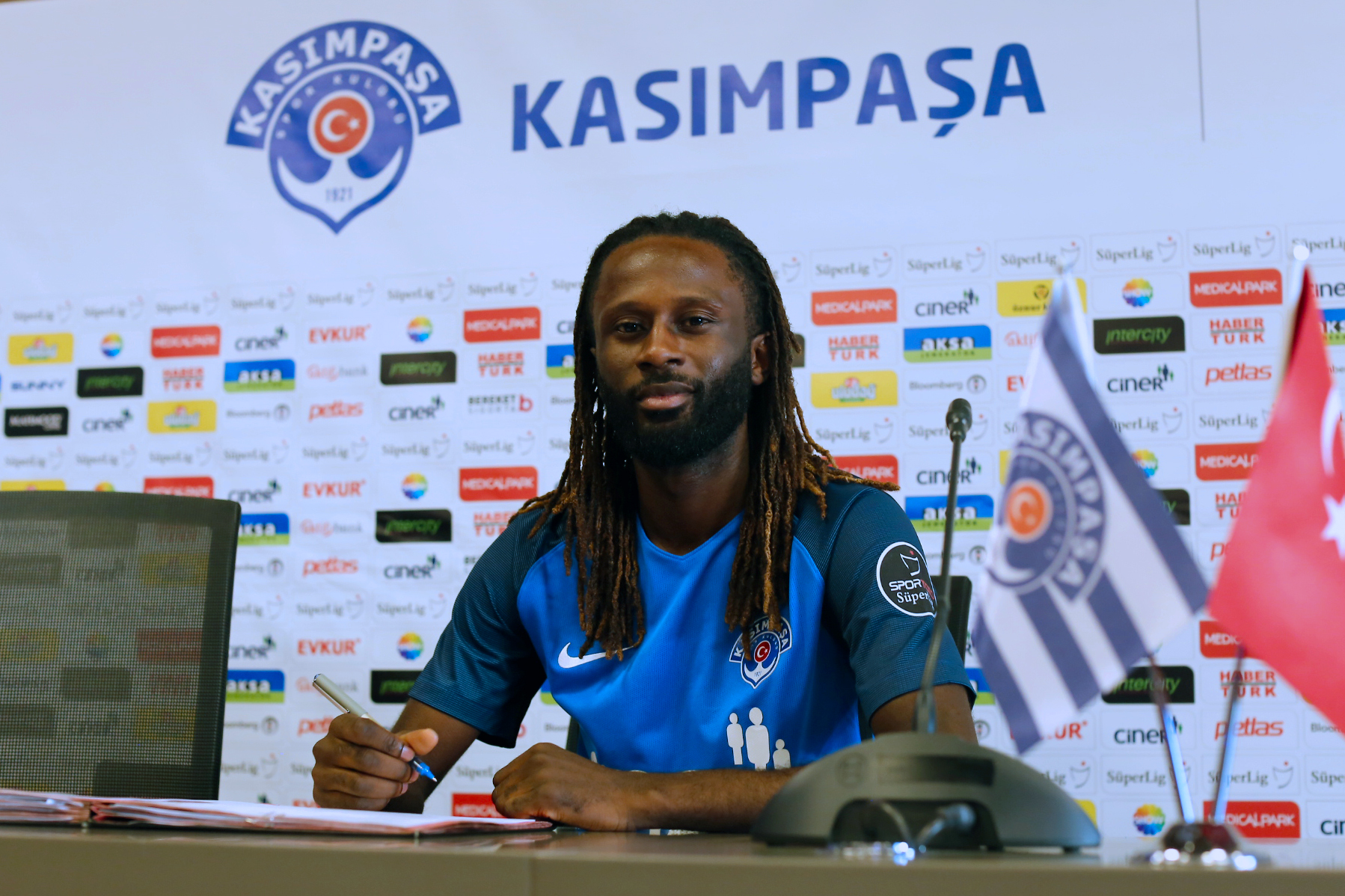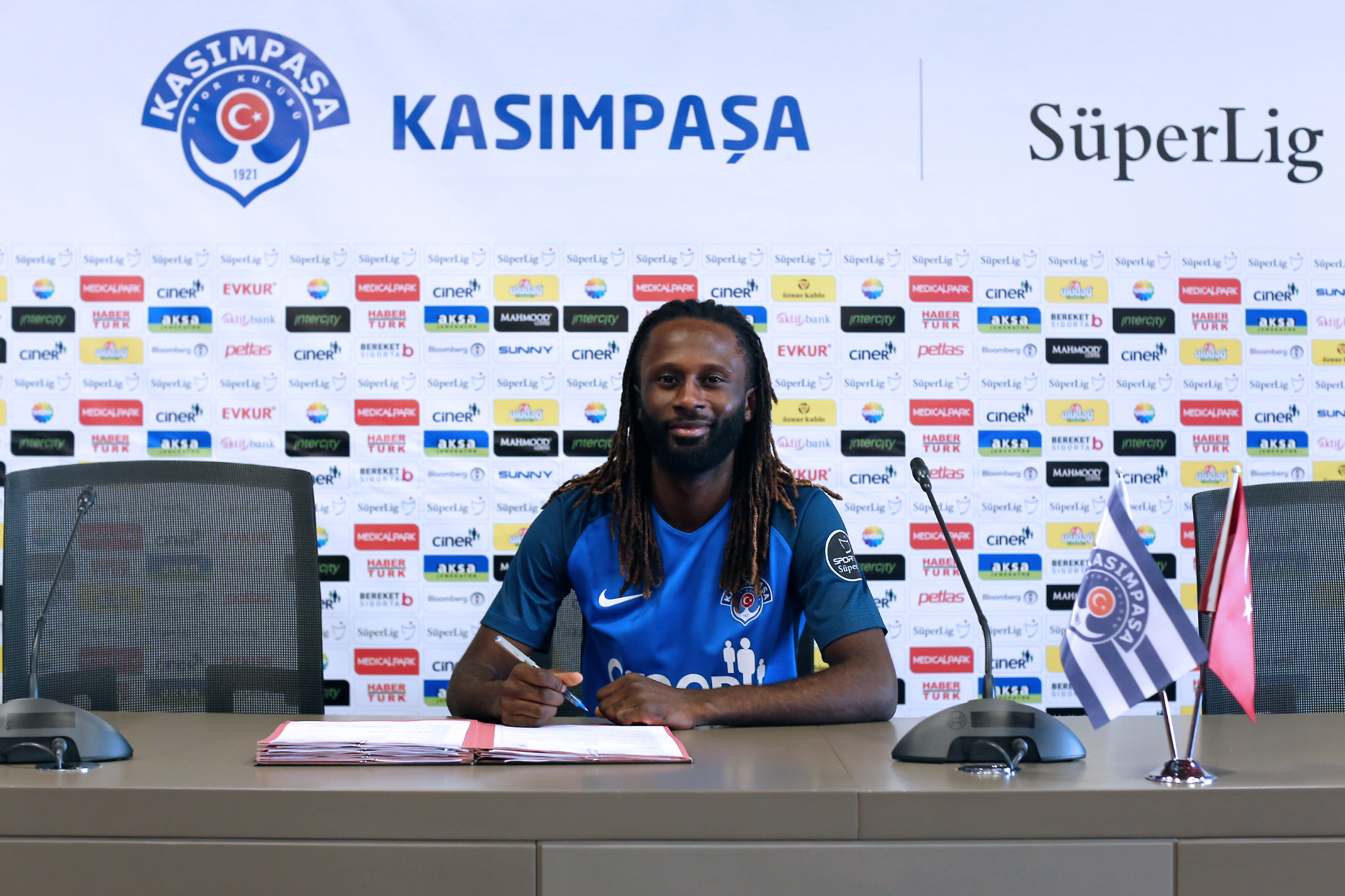 Sponsorumuz Medical Park Hastanesi'nde sağlık kontrolünden geçen Belçika ligi ekiplerinden KRC Genk’in 28 yaşındaki Kongolu oyuncusu Dieumerci Ndongala, Kemerburgaz Tesislerimizde düzenlenen imza töreninde kendisini satın alma opsiyonu ile beraber sezon sonuna kadar kiralık olarak Kasımpaşamıza bağlayan sözleşmeye imza attı.