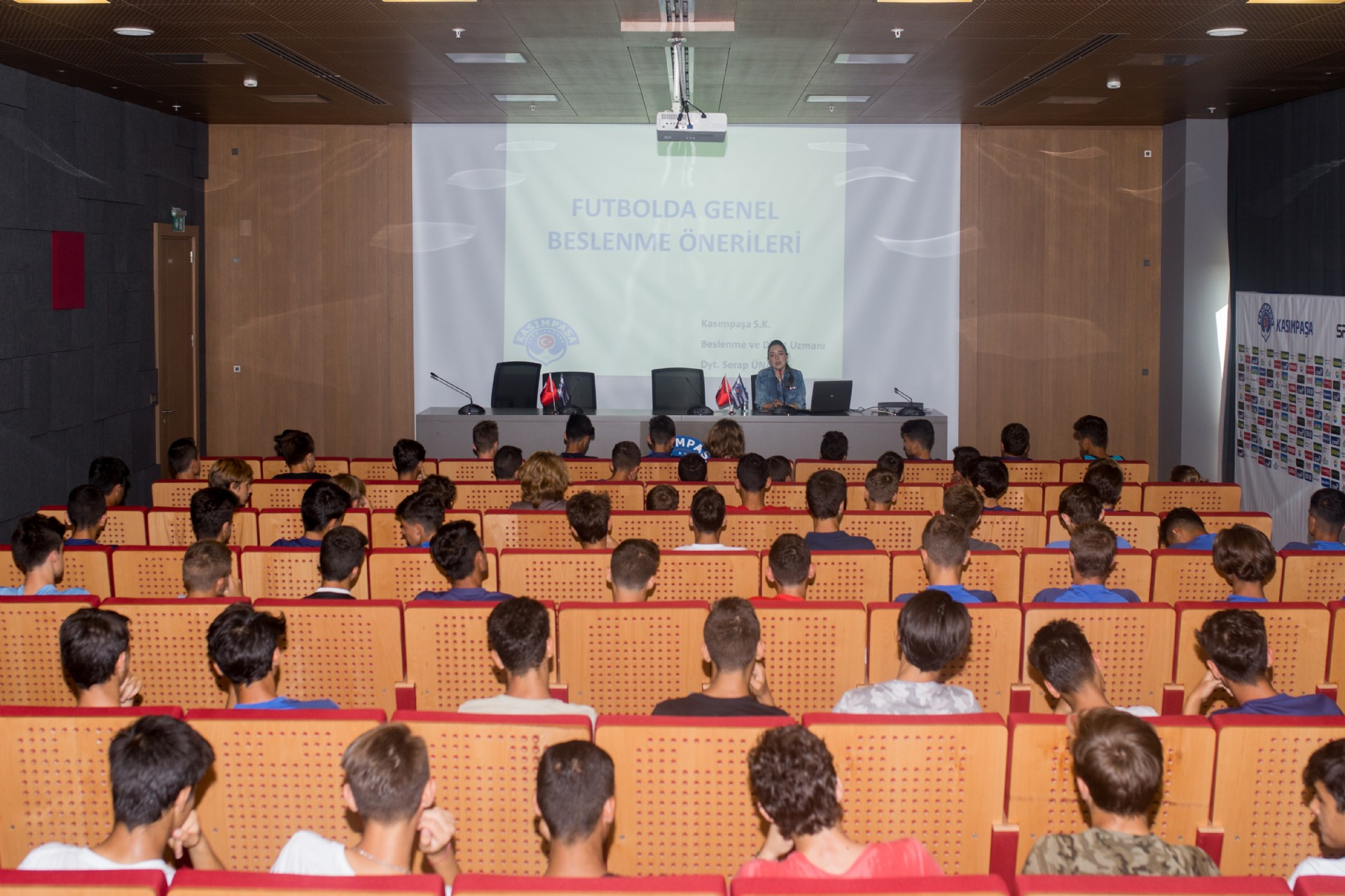 Kasımpaşamızın Kemerburgaz Tesisleri Konferans Salonu’nda yapılan eğitimde, Kulüp Diyetisyenlerimizden Serap Ünal, altyapı teknik ekibimize ve oyuncularımıza sporcu beslenmesi ve beslenmede sık yapılan hatalar ile ilgili eğitim verdi.
