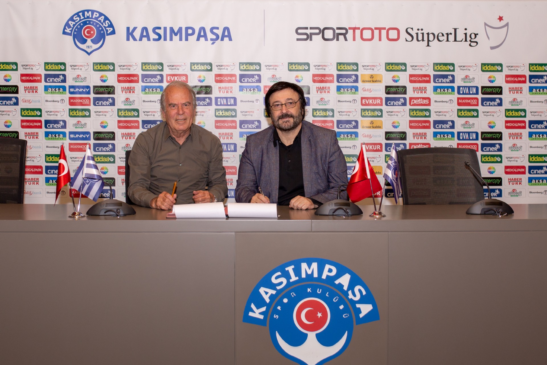 Kemerburgaz Tesislerimizde Yönetim Kurulu Üyemiz Mehmet Fatih Saraç'ın da hazır bulunduğu imza töreninde yeni Teknik Sorumlumuz Mustafa Denizli, kendisini 1 yıllığına Kasımpaşamıza bağlayan sözleşmeye imza attı.