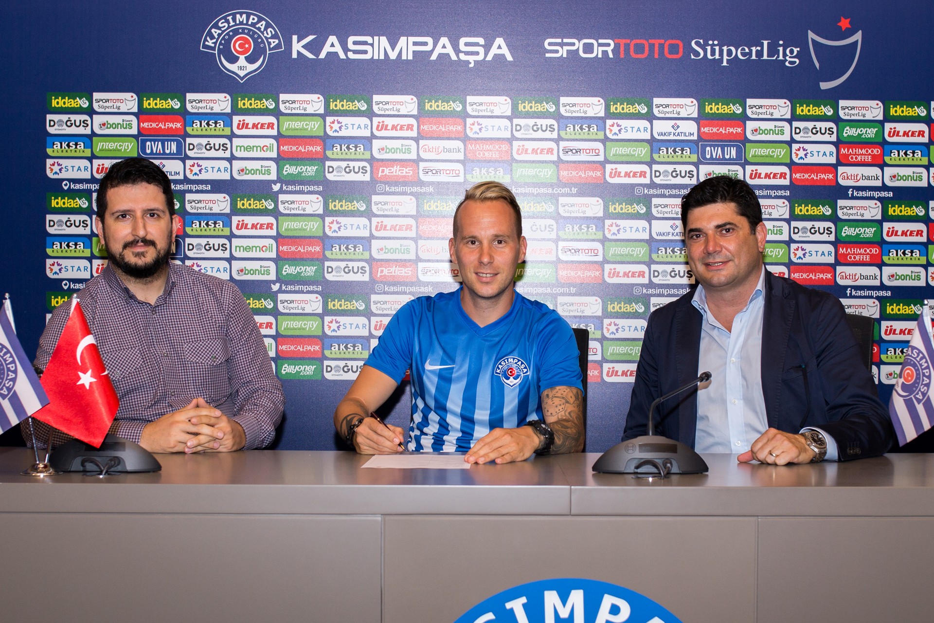 İsviçre'nin FC Luzern takımının 31 yaşındaki Alman orta saha oyuncusu Markus Neumayr, Kemerburgaz Tesislerimizde Pazarlama Müdürümüz Emre Zengilli ve Mali İşler Sorumlumuz Celal Yıldırım'ın hazır bulunduğu imza töreninde kendisini 2 yıllığına Kasımpaşamıza bağlayan sözleşmeye imza attı.