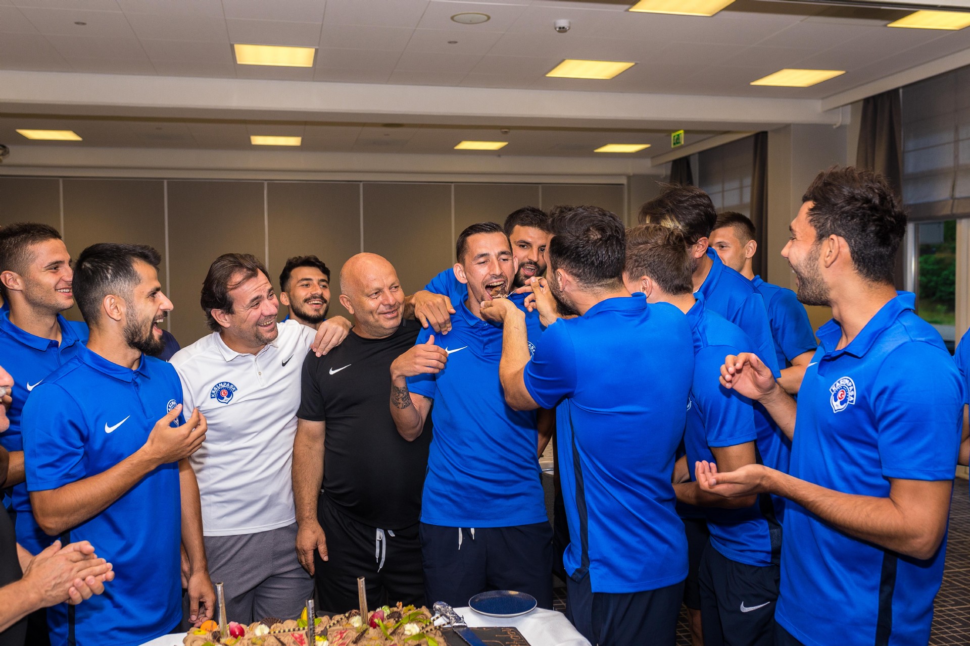 Heracles maçı sonrasında kamp yaptığımız otelin yemek salonunda gerçekleştirilen doğum gününe Sadiku, çok sevindiğini, böylesine güzel bir ortamda bulunduğu için çok mutlu olduğunu ve herkese teşekkür ettiğini dile getirdi.