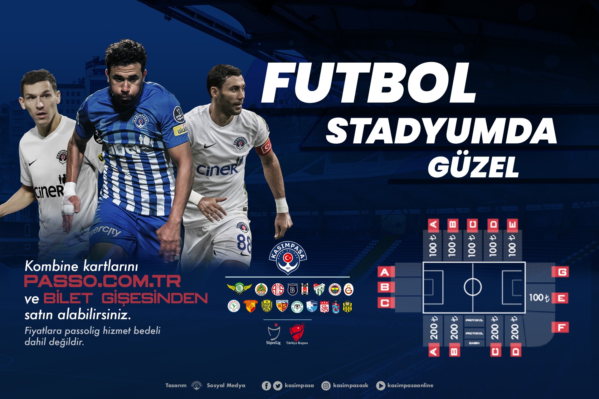 Sahamızda ikinci yarıda Galatasaray, Trabzonspor, Fenerbahçe ve Türkiye Ligi’nin diğer güçlü takımlarıyla yapacağımız maçlarda kombine biletini al, Kasımpaşa’yı destekle.